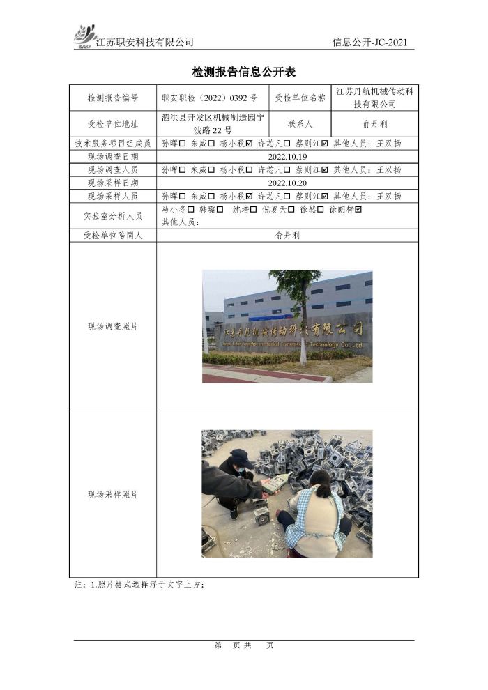 檢測報告公示