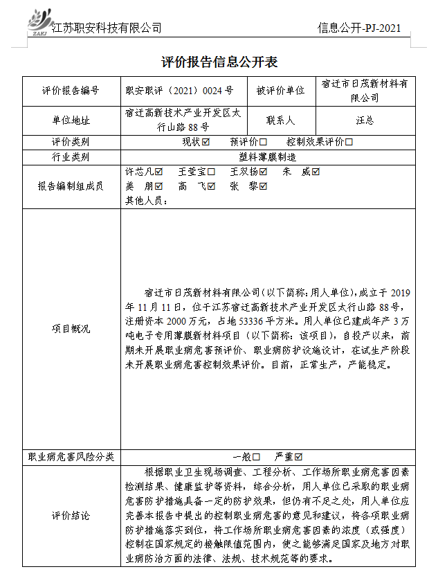 檢測報告公示