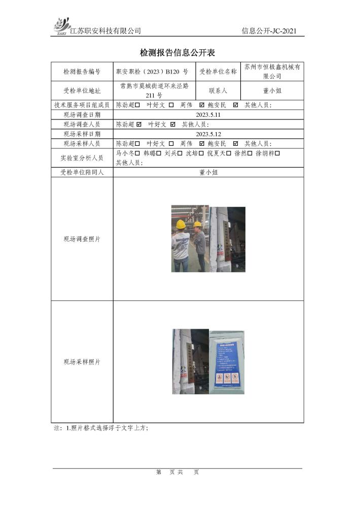檢測報告公示
