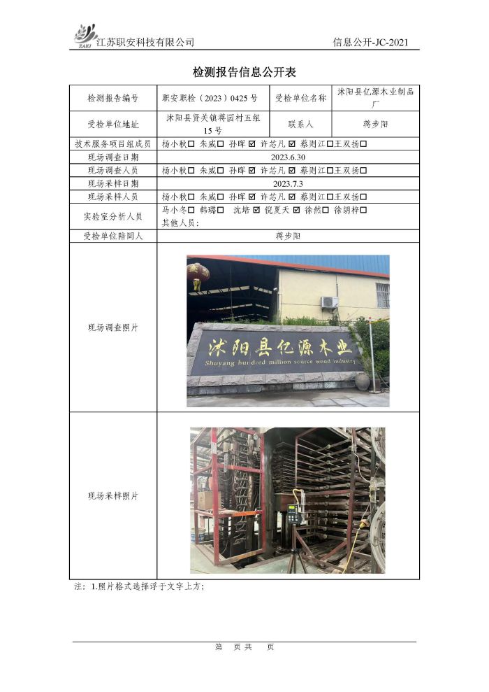 檢測報告公示