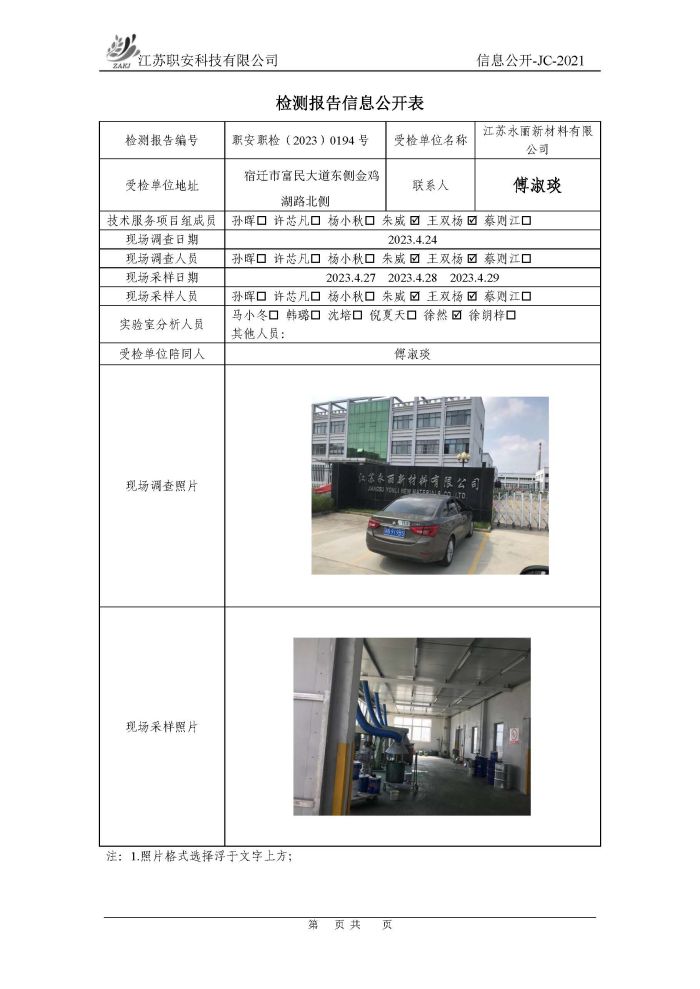 檢測報告公示