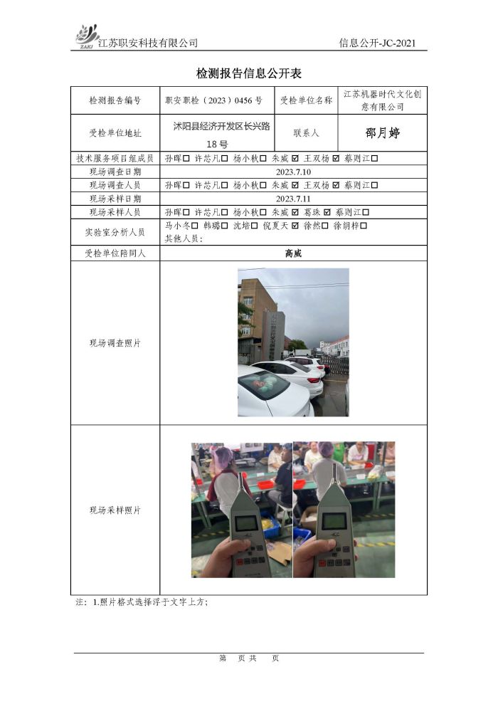檢測報告公示