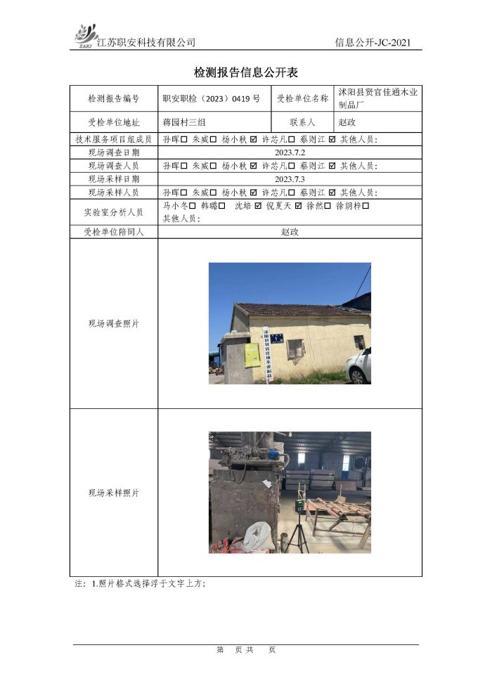 檢測報告公示