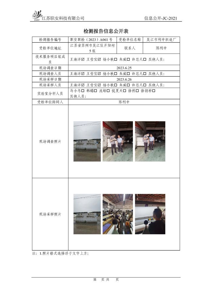 檢測報告公示