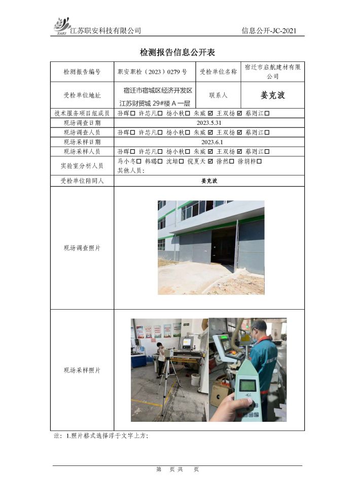 檢測報告公示