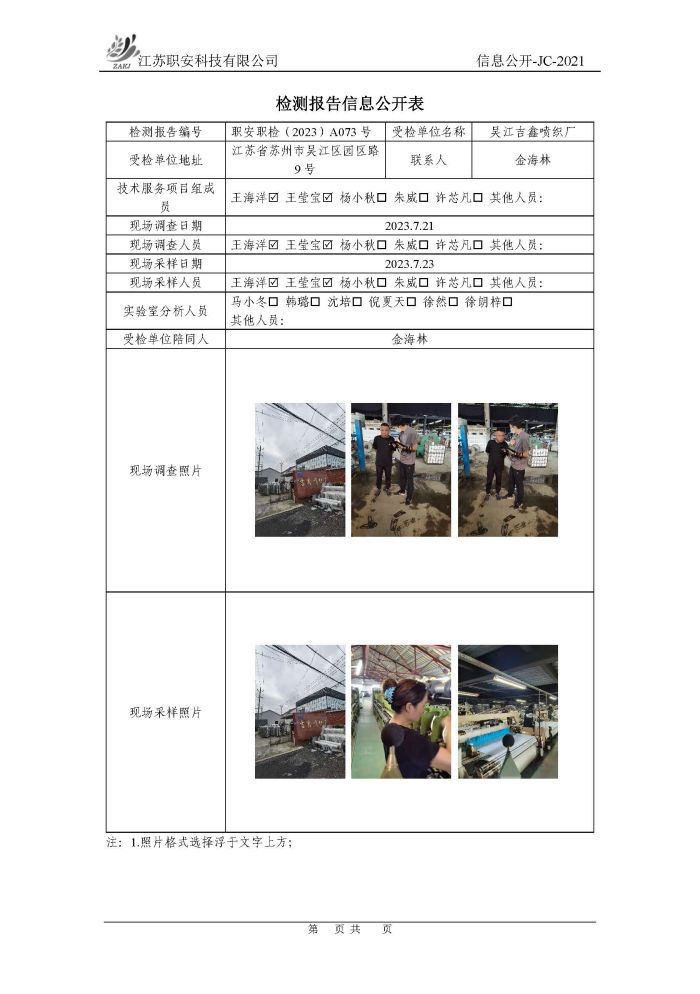 檢測報告公示