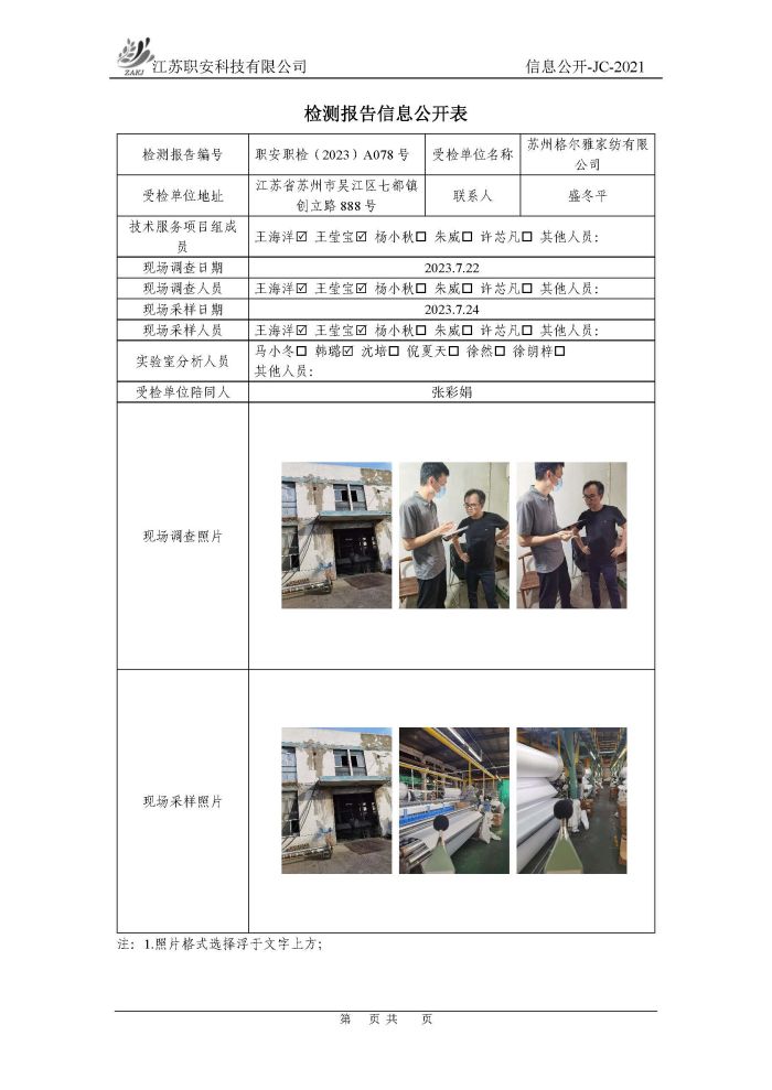 檢測報告公示