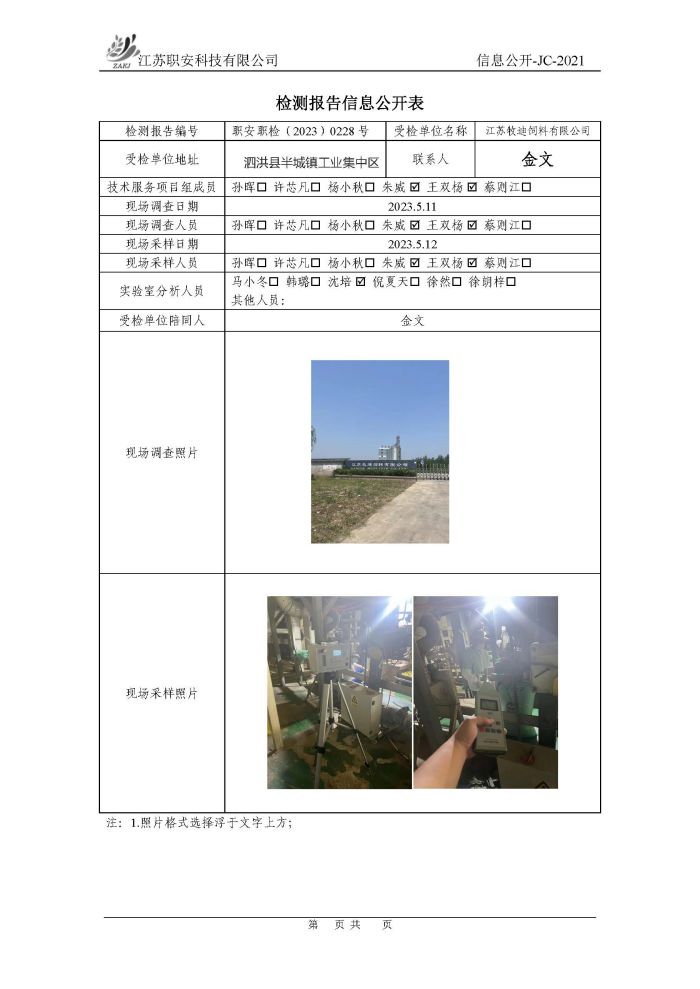 檢測報告公示
