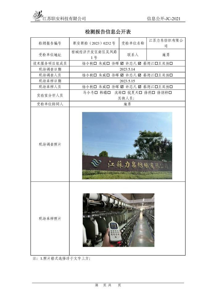 檢測報告公示