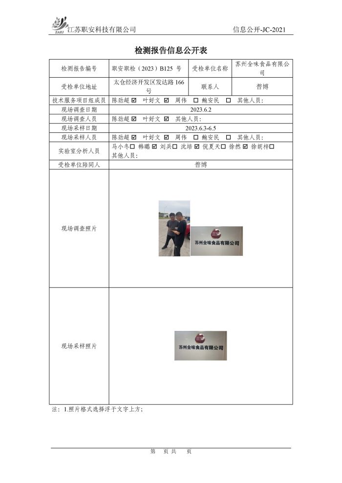 檢測報告公示
