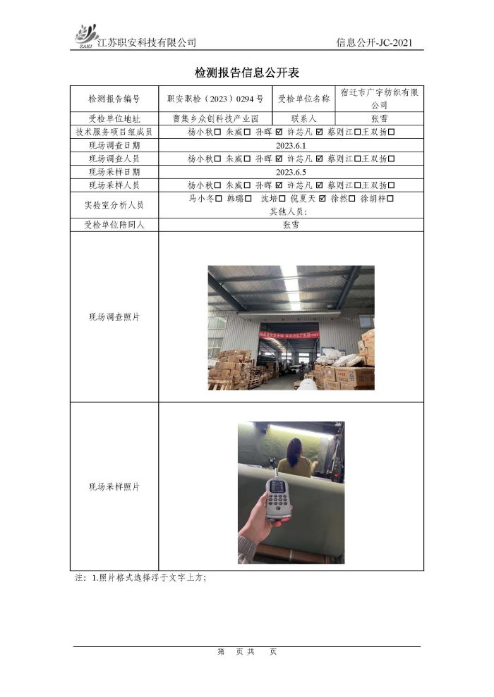 檢測報告公示