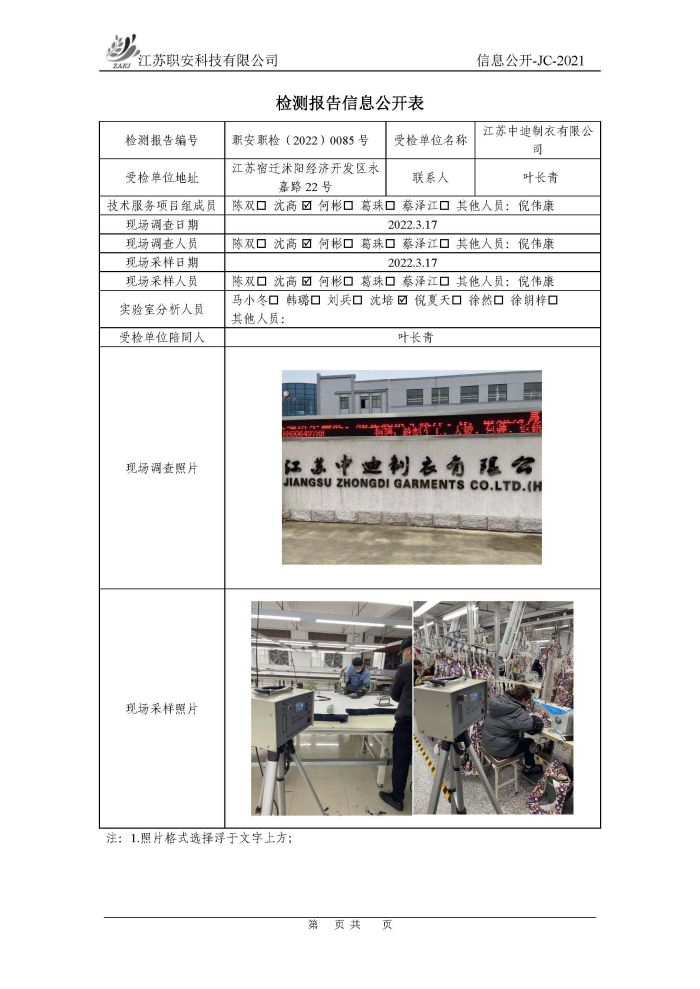 檢測報告公示