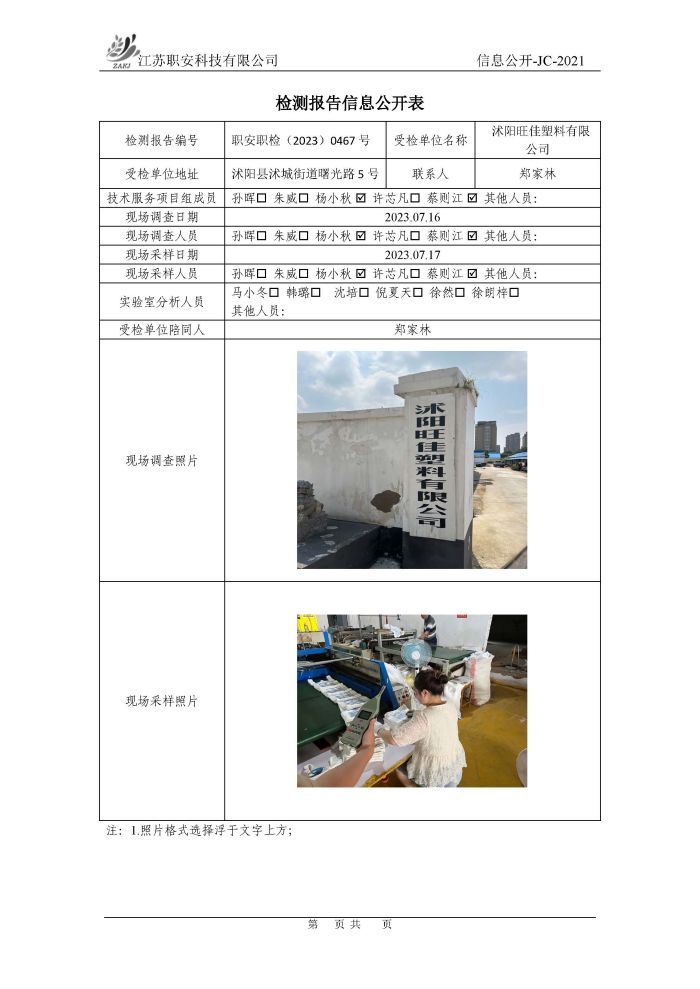 檢測報告公示