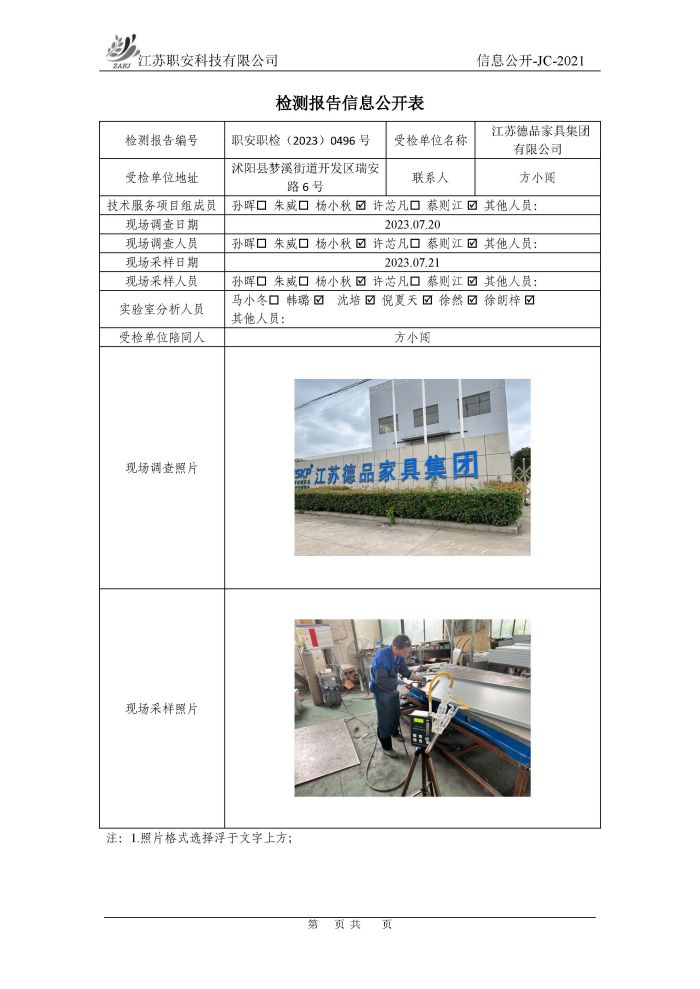 檢測報告公示