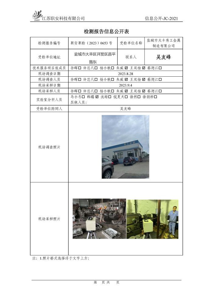 檢測報告公示