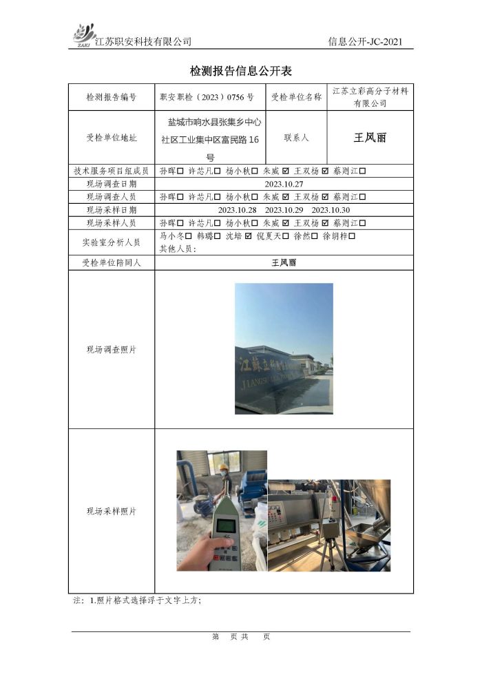 檢測報告公示