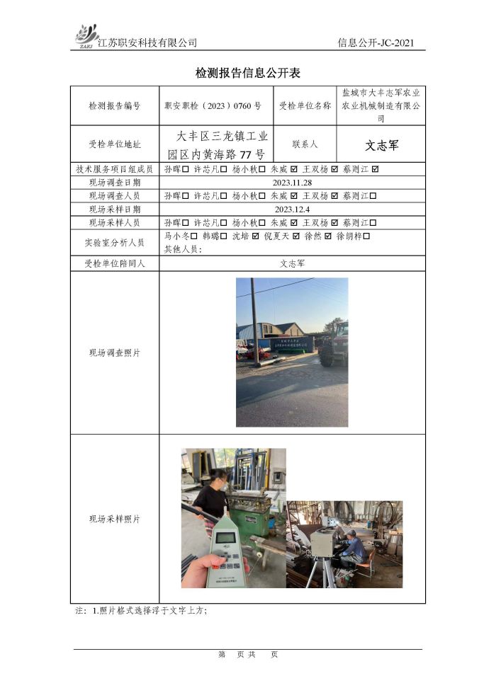 檢測報告公示