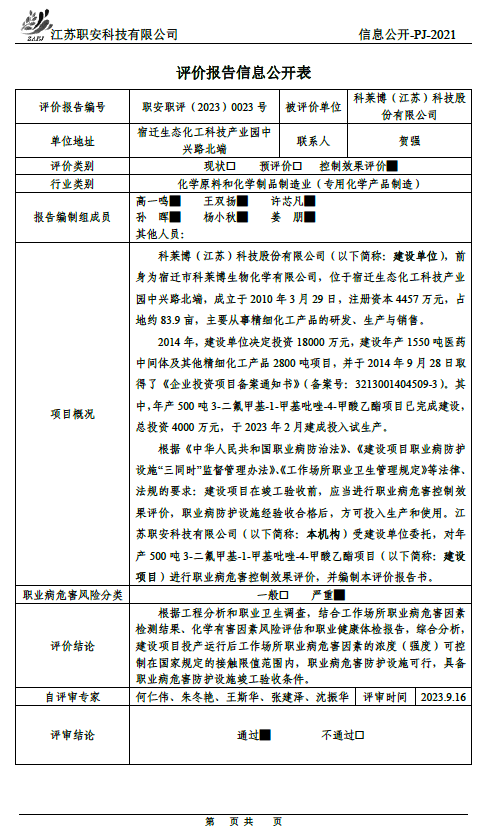 檢測報告公示