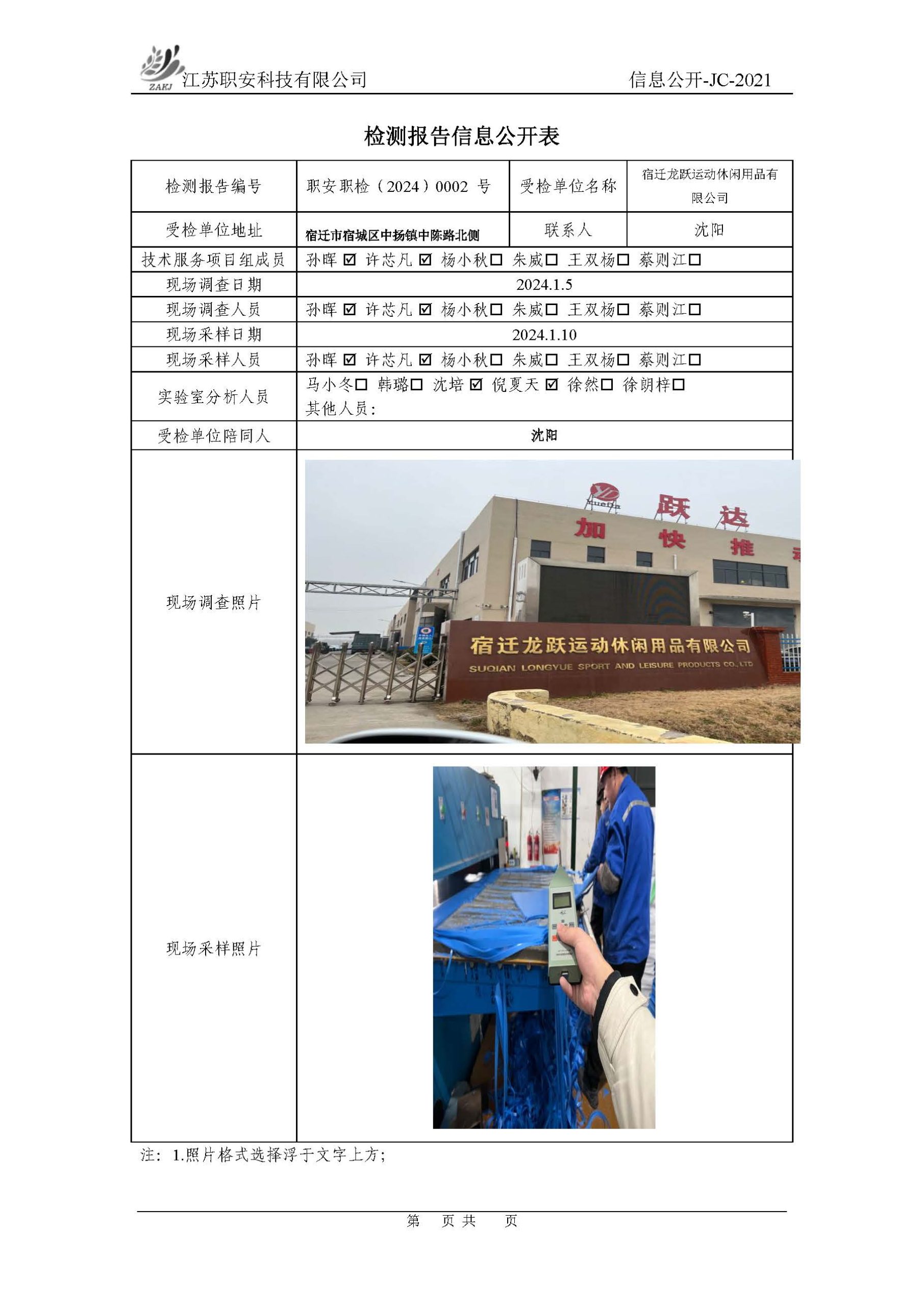 檢測報告公示
