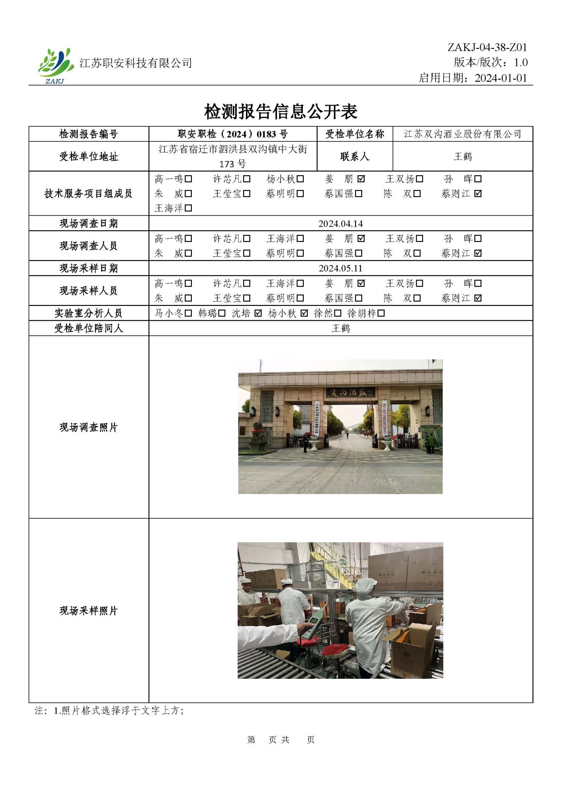 檢測報告公示