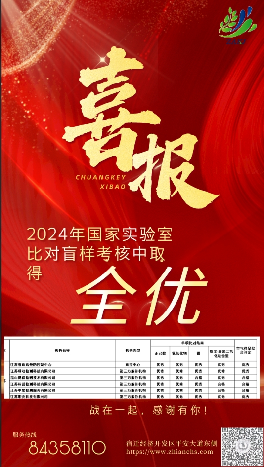 喜報(bào),江蘇職安科技有限公司在2024年度國家實(shí)驗(yàn)室比對盲樣考核中取得全優(yōu)