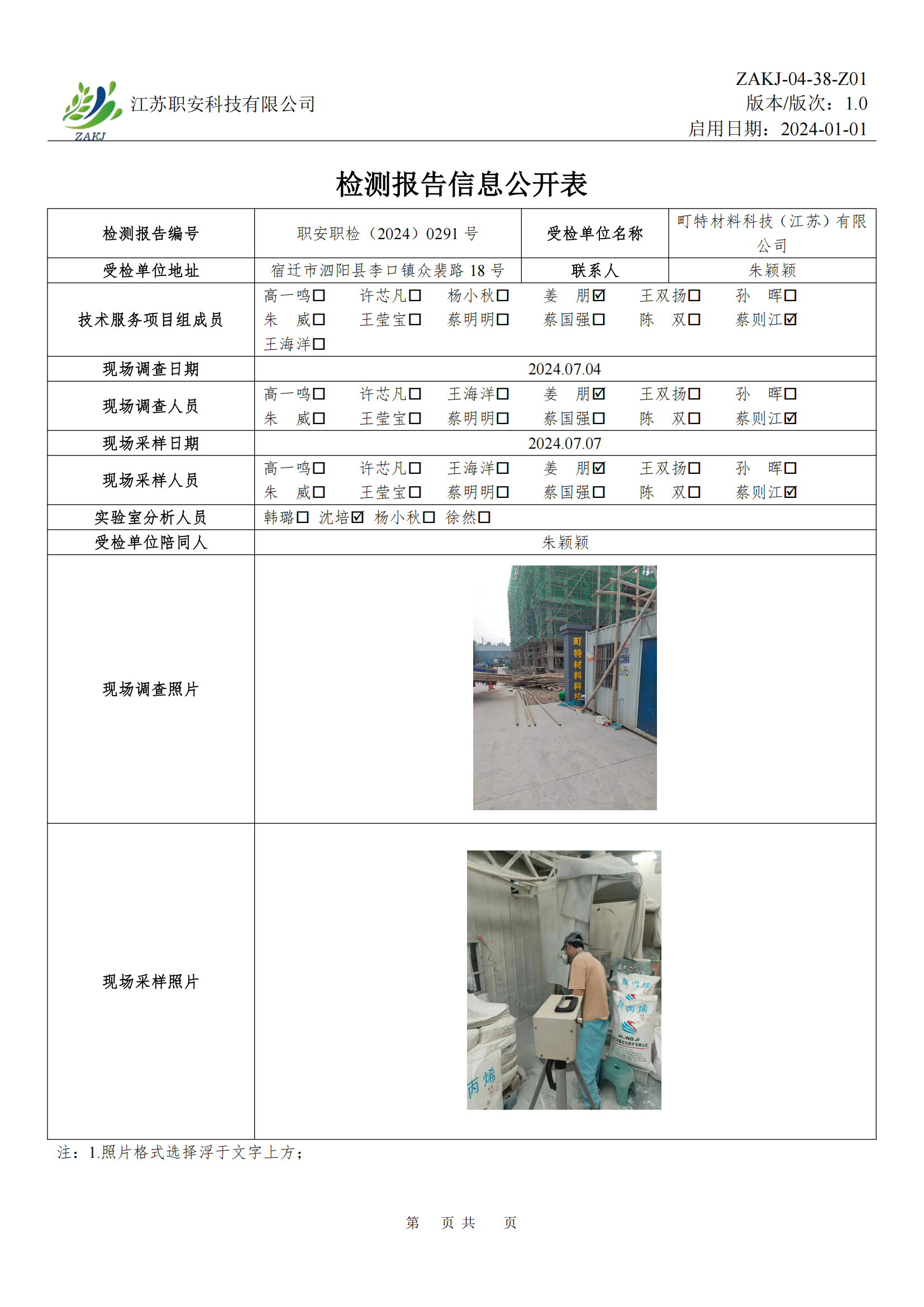 檢測報告公示