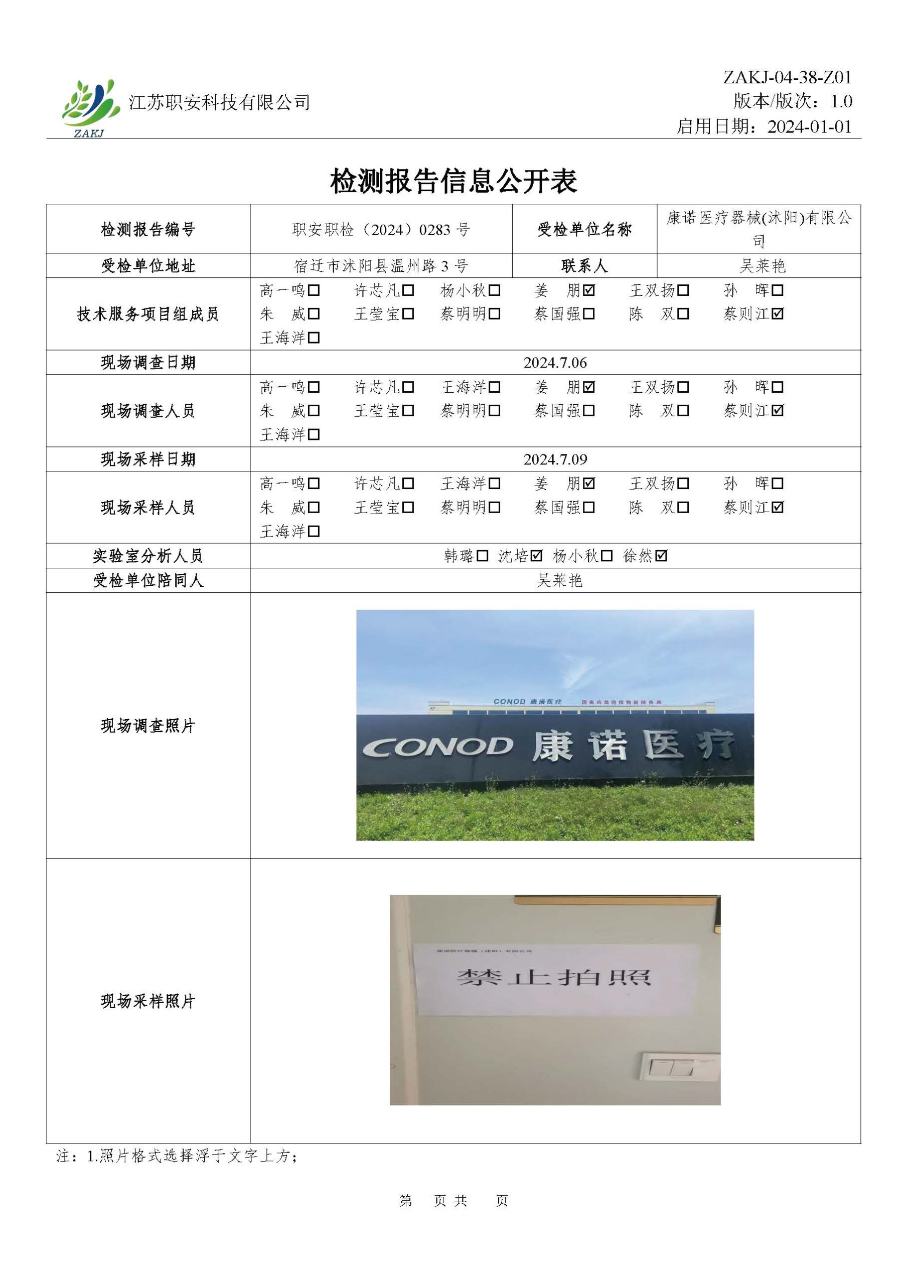 檢測報告公示