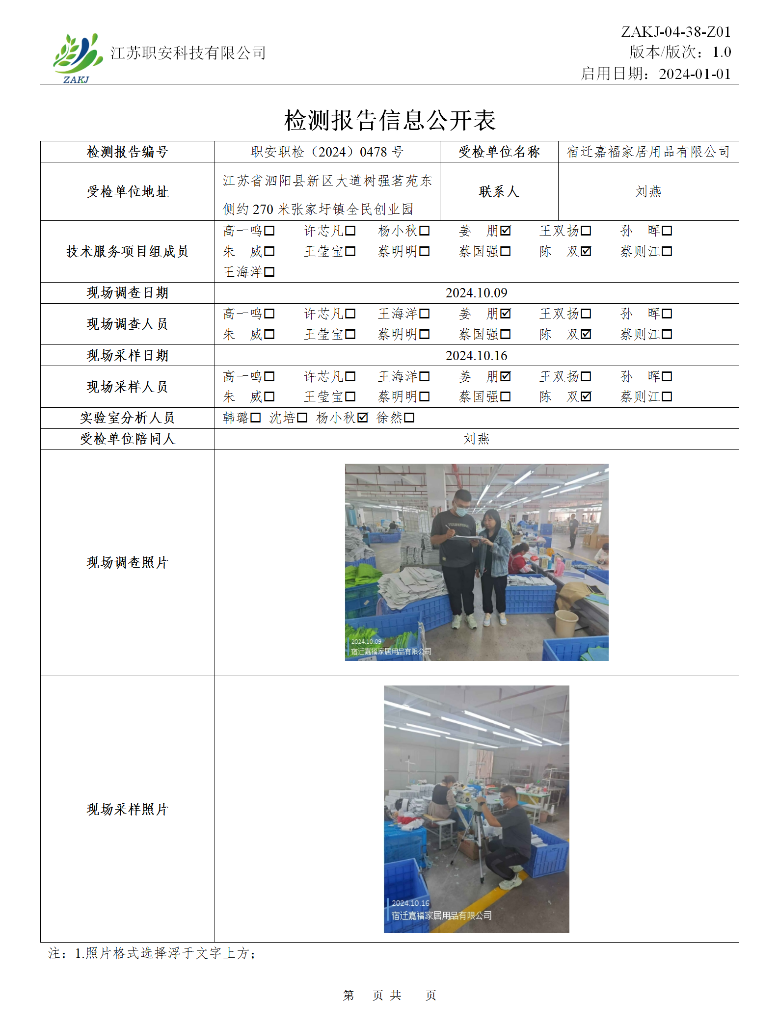 檢測報告公示