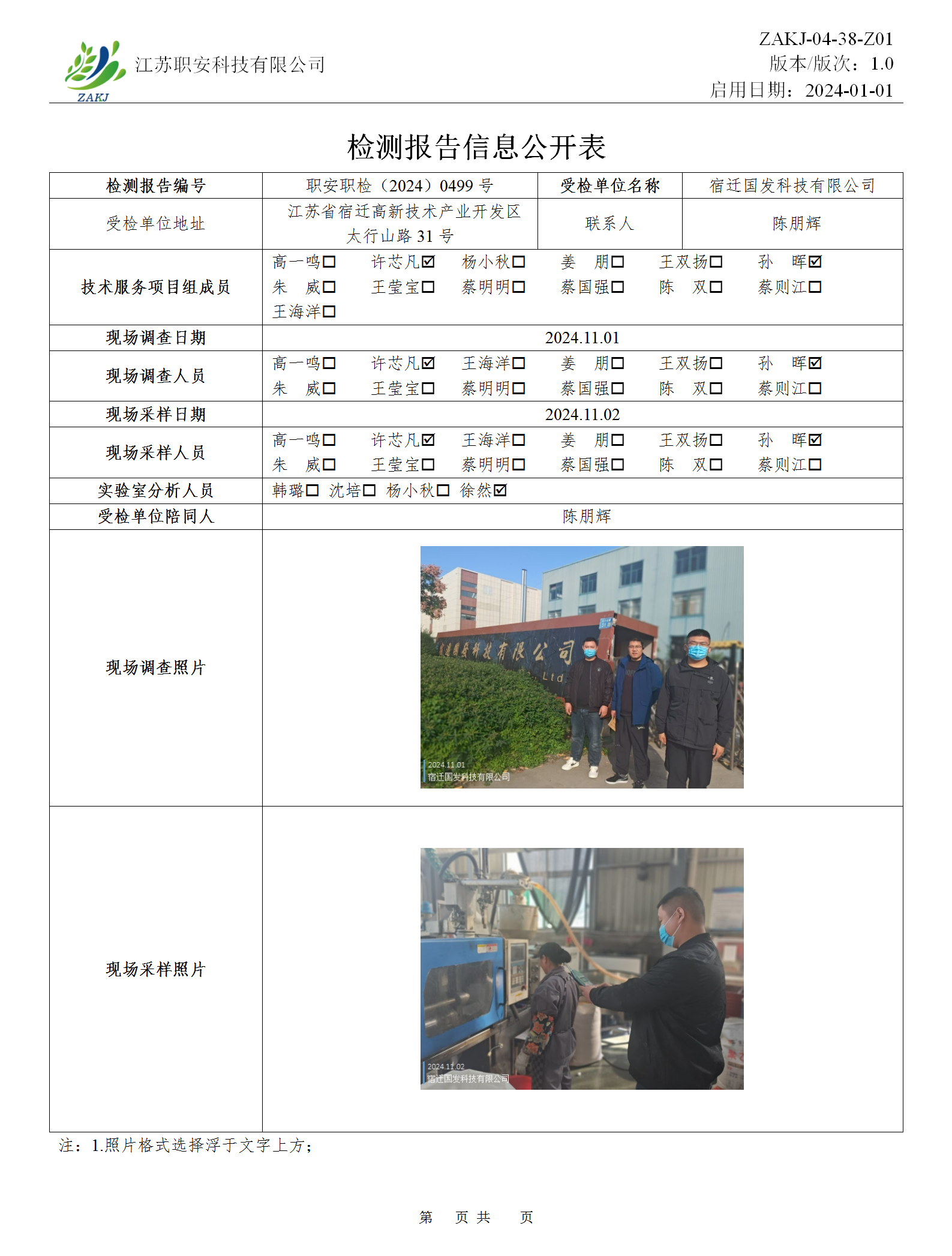 檢測報告公示