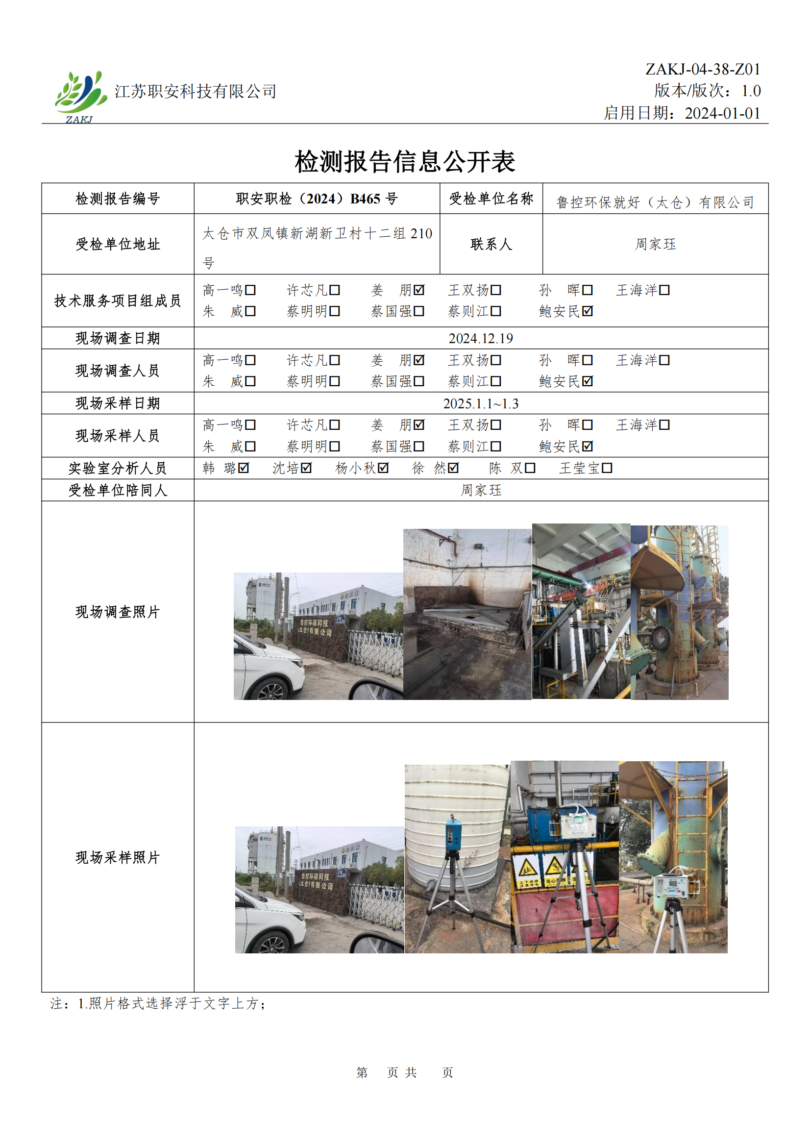檢測報告公示