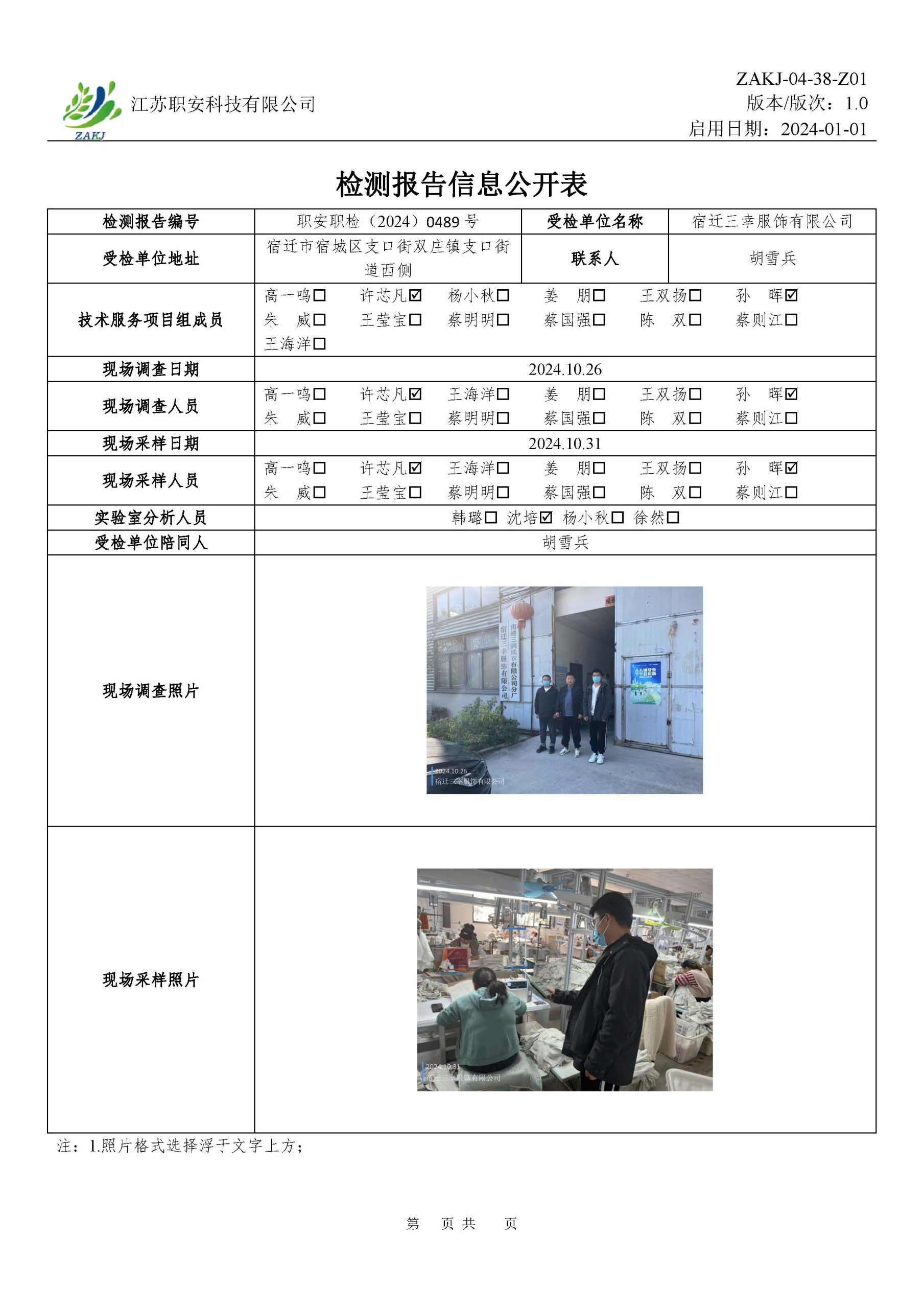 檢測報告公示