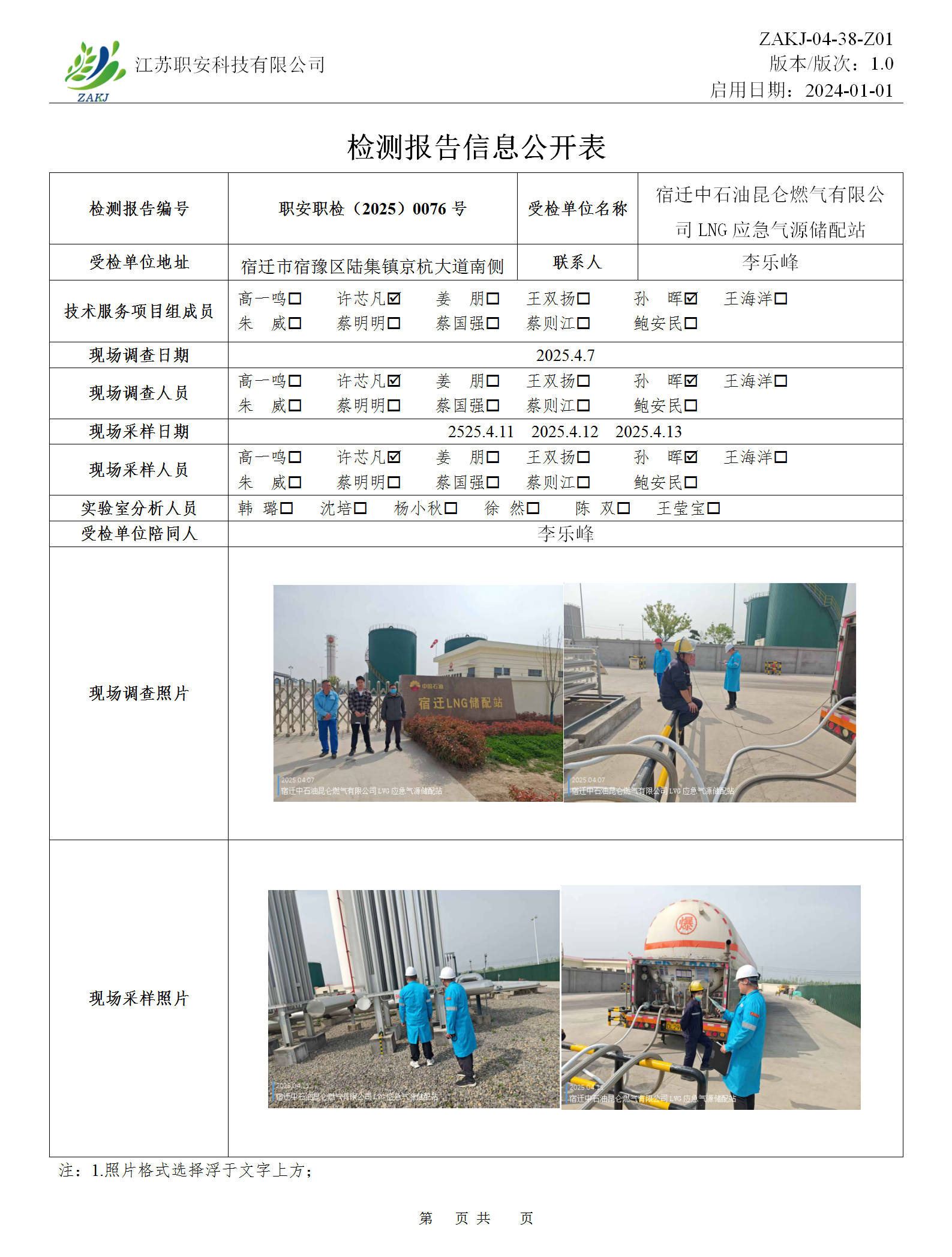 檢測報告公示