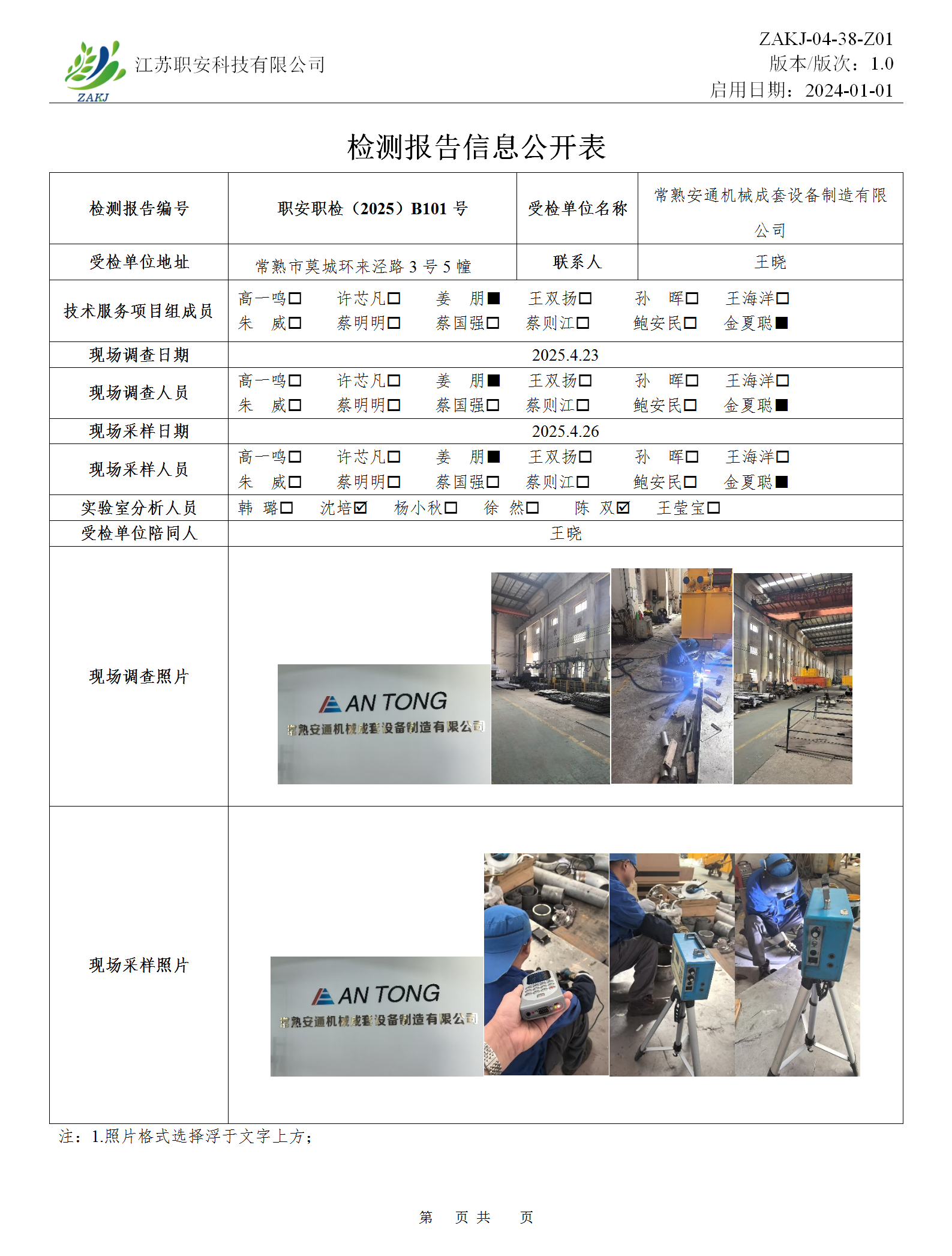 檢測報告公示