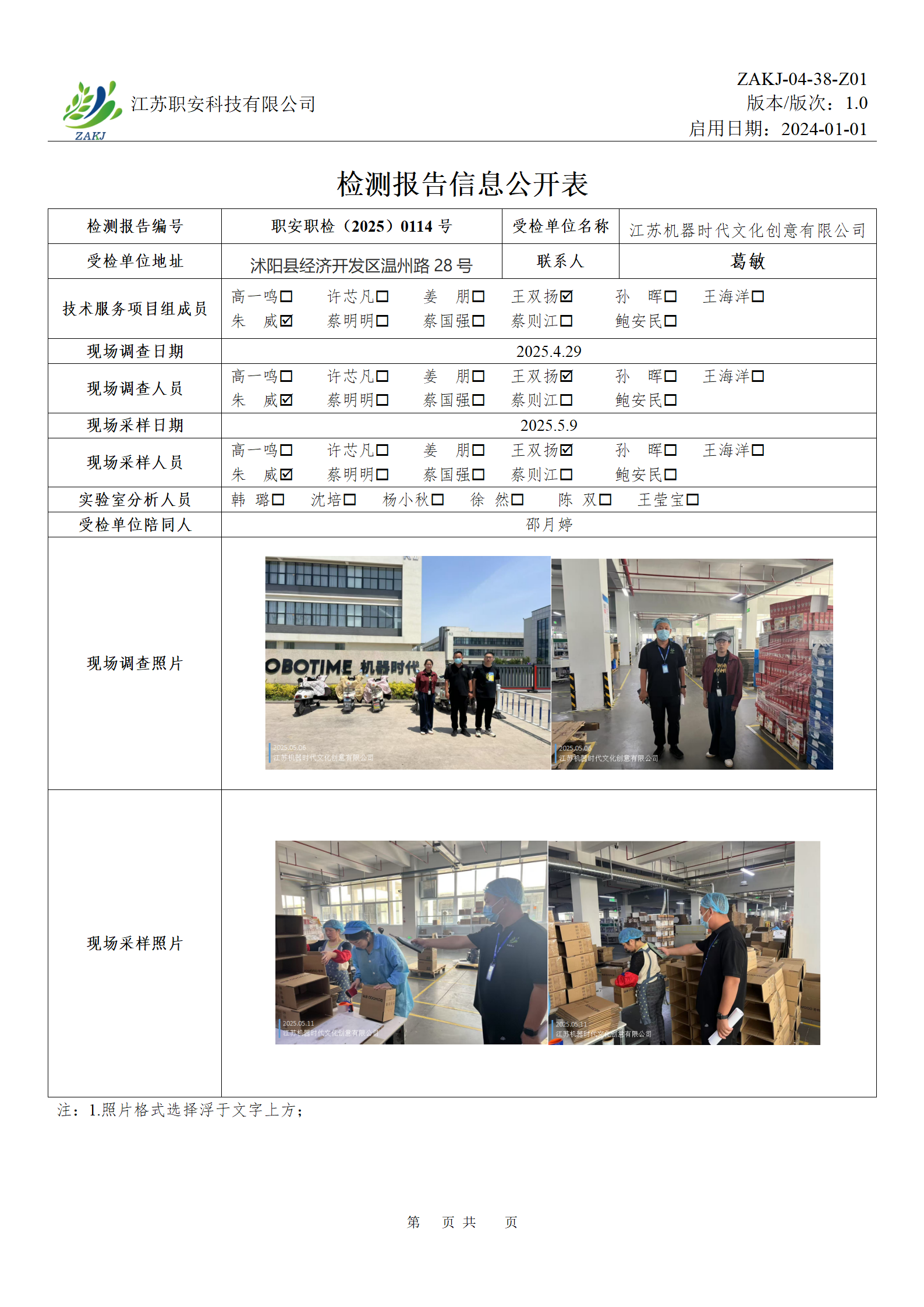 檢測報告公示