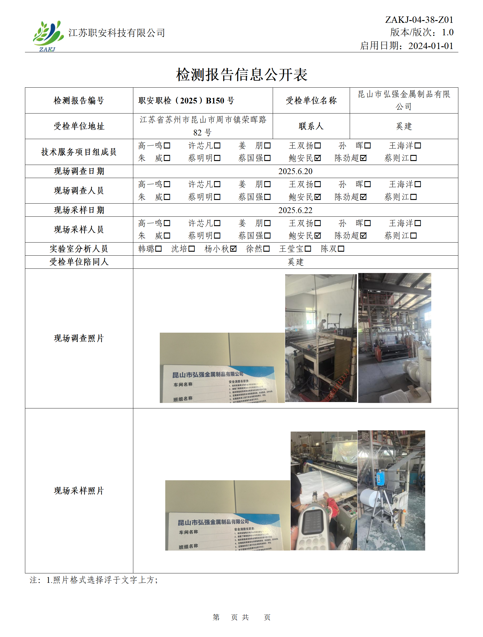 檢測報告公示