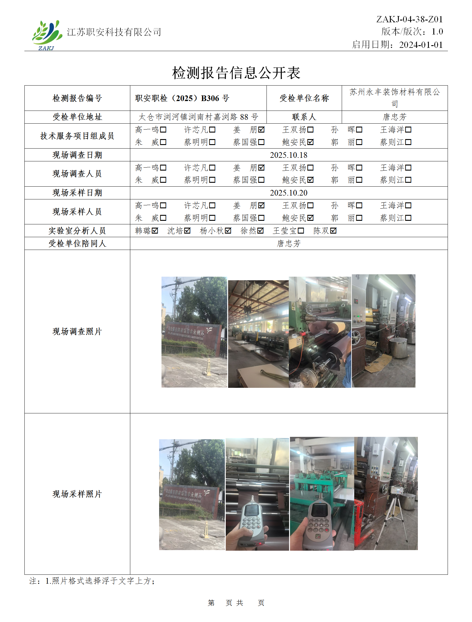 檢測報告公示