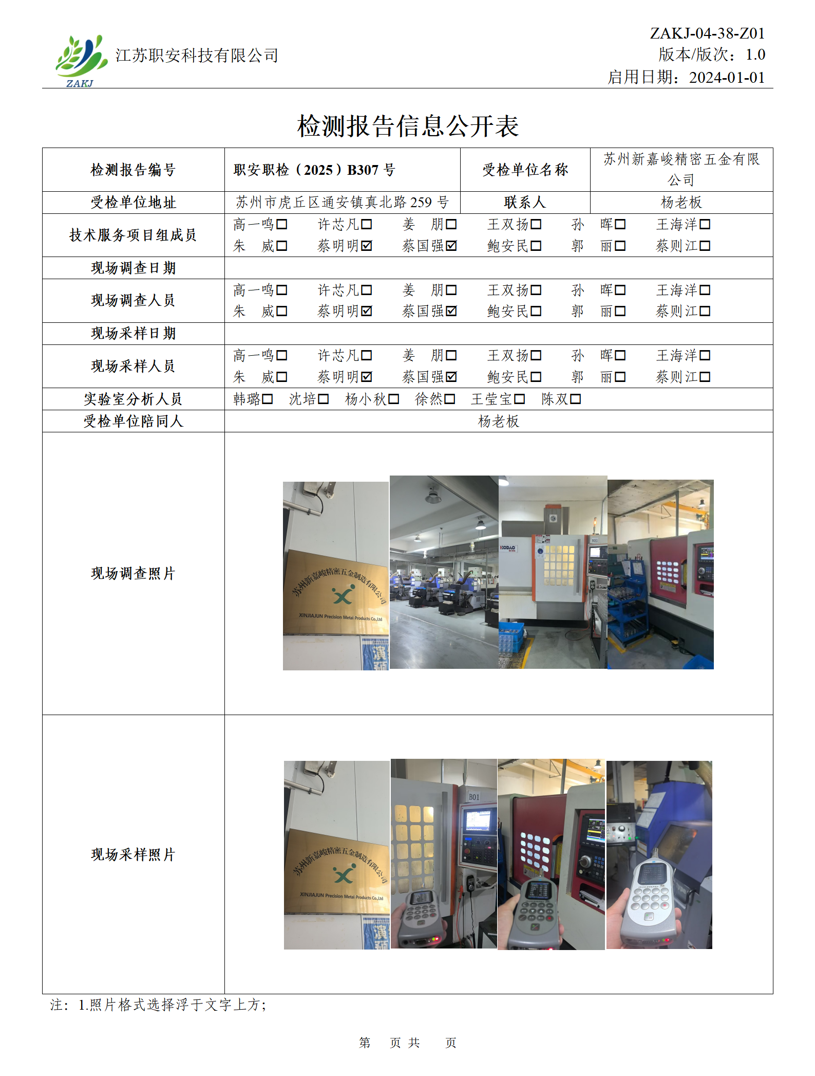 檢測報告公示