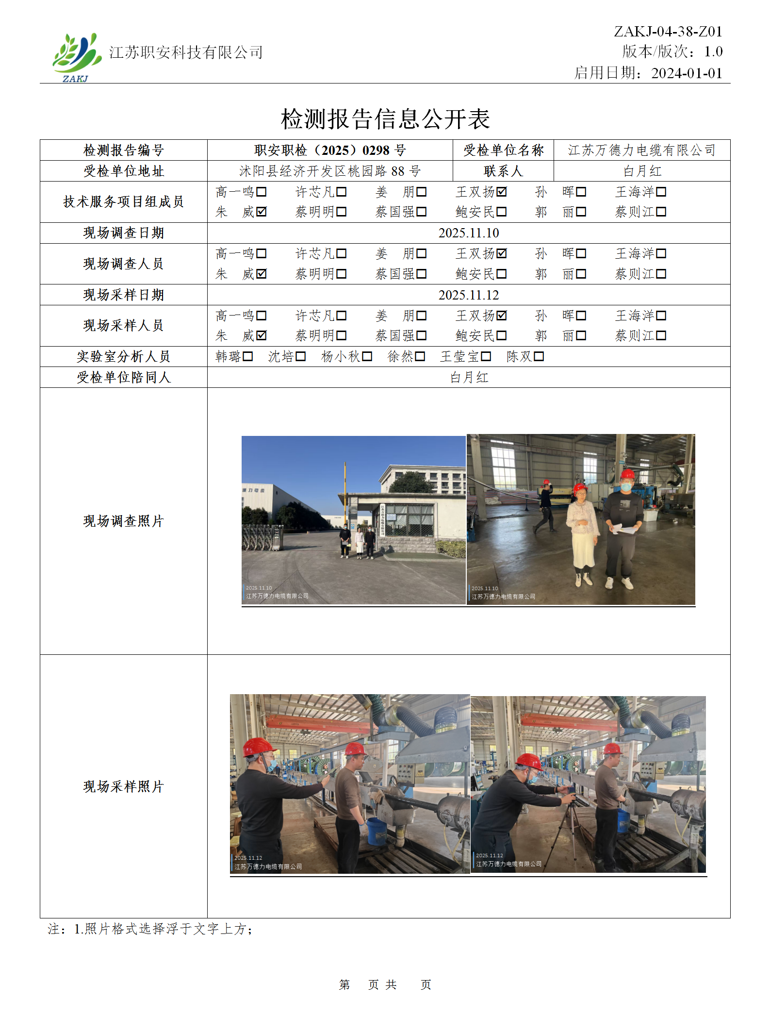 檢測報告公示