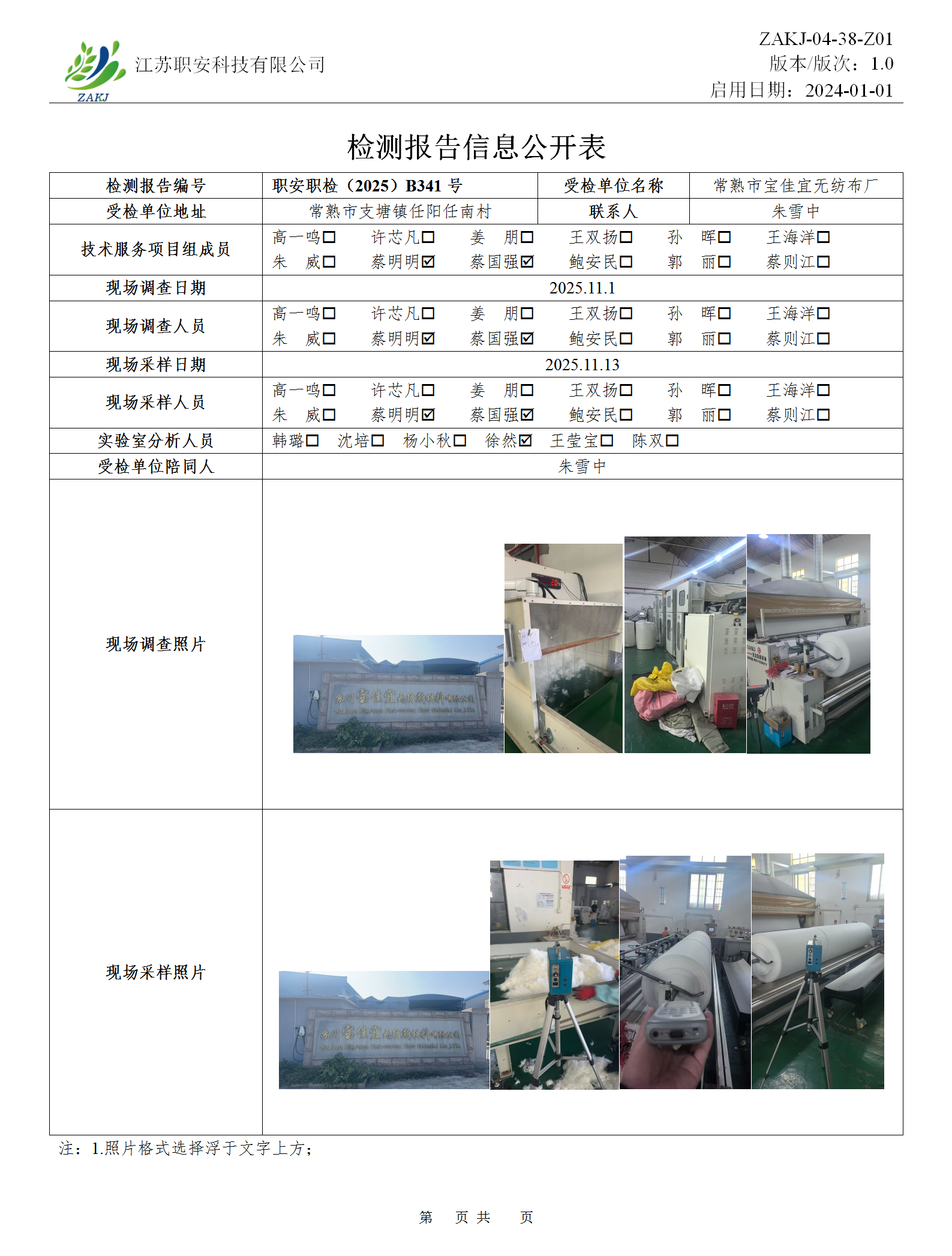 檢測報告公示