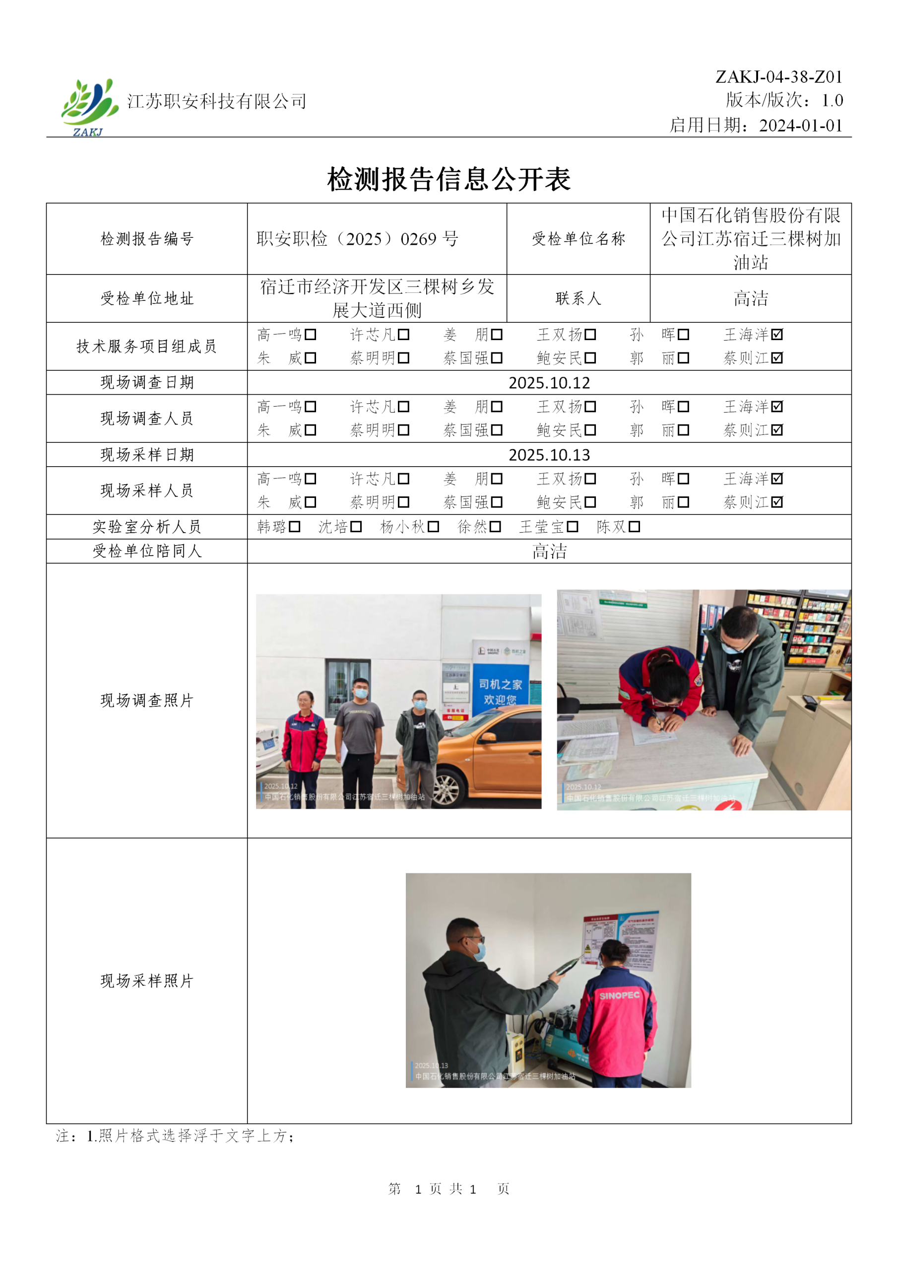 檢測報告公示