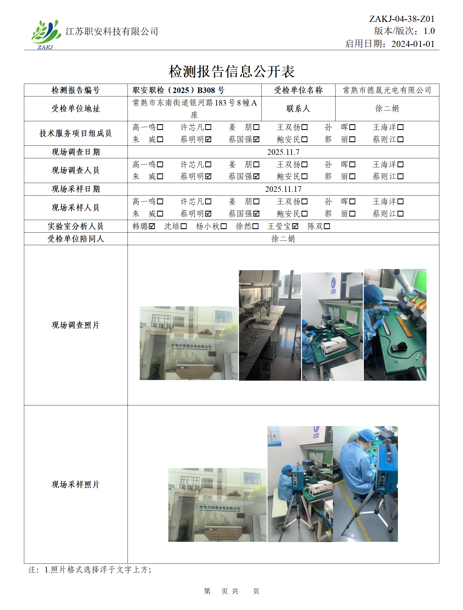 檢測報告公示