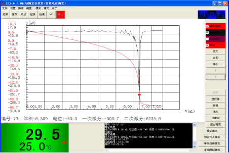 方案成熟,過程注意實驗用氫氧化鈉標準溶液配制好后需標定濃度。此化學反應突躍明顯,但需設置在“中”mV量在100~150mV之間。