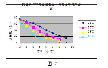 變溫條件RF樹脂液透射比與縮合時間關(guān)系圖