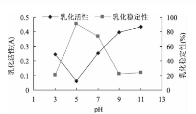 圖1 pH值對乳化性的影響
