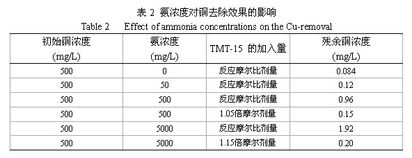 含銅廢水主要來自印刷電路板、金屬的漂洗和電鍍、紙漿制作等行業[1]。過量的銅會產生危害并有致突變作用[2],用含銅廢水灌溉農田,銅可在土壤和農作物內累積,產生危害[3]。為了控制銅等重金屬對水體的污染,保護地面水和地下水水質的良好狀態,我G政府制定了統一的污水排放標準,其中總銅的一級排放標準為0.5mg/L[4]。 當廢水中含有絡合劑如NH3、EDTA、磷酸酯、檸檬酸鹽和天然有機酸時,它們將與銅離子配位形成非常穩定的可溶性絡合物,從而干擾傳統工藝對銅的處理[5]。以印制電路工業為例,目前印刷電路板的腐蝕多數采用堿氨蝕刻液。該蝕刻液借助氧化、溶解和配合等化學過程,將印制電路板上露出的銅以二氯化四氨合銅的形式溶解下來,其總反應為: ![]() 這樣,電路板經堿性蝕刻后產生了大量的含銅清洗廢水和回收尾液。此類廢液偏堿性,NH3較多,銅以較穩定的銅氨絡合物形式存在。采用混凝、中和沉淀、吸附、電解、微生物法等處理方法,難以達到良好的去除效果或處理成本太高。而采用硫化物沉淀法處理含絡合劑的重金屬廢水,由于各種重金屬硫化物的溶度積都非常小,重金屬的去除效果很好。常用的硫化物分無機硫(硫化鈉)與有機硫(STC、DTC和TMT)兩大類,有關分子結構見圖1,它們的生態學及毒理學數據見表1。 ![]() 從表1中可以看出,與TMT相比,硫化鈉、STC和DTC的毒性較大,特別是DTC更具有生物殺傷性,曾經由于它的過量投加,殺死了從Anderson 到 Indianapolis的50英米流域內的117噸魚[7]。TMT常見的商品形式為15%的水溶液,俗稱TMT-15,它在20℃時的密度為1.12g/mL[6]。可見,當每立方米廢水中含有高達12000mLTMT-15時,仍不會對魚類的生存造成任何不良影響,因此,TMT是一種環境友好型有機硫藥劑。在含有[Cu(NH3)4]2+的廢水中加入TMT-15時,發生以下反應: ![]() 用TMT-15處理含銅氨絡合離子廢水的影響因素,用元素分析、紅外與X衍射等手段表征了生成的沉淀,并對它的熱穩定性與在去離子水中的滲濾特性作了初步探討。 1 試驗部分 1.1 試劑 固體Na3(C3N3S3)•9H2O(即TMT)為美GAldrich公司出品,將33.32g 的Na3(C3N3S3)•9H2O 晶體溶解于100g 的去離子水中,即為TMT的15%水溶液,俗稱TMT-15。其余所涉及的化學品皆為分析純,實驗所用的水都為新鮮的去離子水,其電導率小于0.7μs/cm。 1.2 主要儀器 實驗中pH值的測定是由Hanna pH 211型ph計與E-201-C-6型復合電極完成的,采用的pH定位液(4.01、6.86 和9.18)由上海雷磁公司出品。熱重分析采用Setaram Setsys-16 TA儀,實驗在99.999%的氮氣氛圍中進行,氣體流速為50mL/min,溫度范圍為20-800℃,程序升溫速率為10℃/min。紅外分析采用KBr壓片法在Nicolet-Nexus 670紅外光譜分析儀上進行。采用日本理學D/max—rA型衍射儀進行物質的晶相結構分析,以Cu靶的Kα1 (λ= 1.540598 Å)為輻射源,工作電壓40kV,掃描范圍為2θ=10°~90°,掃描速度為8°/min。C、H、N、S的分析在Flash EA 1112 Series型元素分析儀上進行。銅濃度的測定在Iris Interpid Ⅱ XSP型電感耦合等離子發射光譜儀(ICP-AES)上進行。 1.3 試驗方法 1.3.1 殘余銅濃度的測定 在研究影響銅去除效果因素的試驗中,我們配制了含不同銅和氨濃度的溶液各100mL,分別加入一定量的TMT-15藥劑,絮凝劑(聚合氯化鋁PAC)和助凝劑(聚丙烯酰胺PAM)后,靜置一定時間,取上清液用ICP-AES儀測定其殘余的銅濃度。 1.3.2 沉淀產物的制備 為了較好地研究TMT螯合沉淀法所生成的沉淀,我們結合現場的實際,按下述實驗條件制備了研究所用的沉淀物。我們配制溶液的銅初始濃度為500 mg/L,氨濃度為500 mg/L,按反應(1)的物質摩爾比(TMT與Cu的摩爾比為2:3)加入一定量的TMT-15后,立即生成紅棕色沉淀,不加入任何絮凝劑與助凝劑,攪拌30分鐘后,將此沉淀過濾,用水和乙醇沖洗數遍后,先在室溫下干燥,然后放入烘箱在130°C下干燥6h,即得到我們的研究對象。 1.3.3 沉淀產物的滲濾性實驗 用Mettler Toledo AB204-E型的電子天平準確稱取干燥后的沉淀產物0.05 g,放入已裝有50mL去離子水的容量瓶中,室溫條件下在往復式水平振蕩機上連續振蕩96h,振蕩頻率為110±10次/min,振幅為40mm,靜置后用0.45μm.的濾膜過濾,用ICP-AES儀測濾液中銅濃度。 2 結果與討論 2.1 影響銅去除效果的因素研究 2.1.1 氨濃度對銅去除效果的影響 我們用CuCl2和氨水配制了四種氨濃度不同的溶液各100mL,其中銅離子濃度均為500mg/L,而NH3的濃度分別為0、50、500和5000mg/L。然后按化學反應摩爾比的劑量(TMT與Cu的反應摩爾比為2:3)加入TMT-15,靜置30min后,取上層清液測定剩余銅濃度,結果見表2。從表2中可以看出,在銅的初始濃度與TMT-15的加入量都相同的條件下,溶液中絡合劑氨的濃度越高,處理后的殘余銅濃度也越高,銅的去除率下降。對于這種氨濃度較高的銅氨溶液,為了使其處理后的殘余銅濃度低于0.5mg/L的排放標準[4],我們加大了TMT-15的劑量,以便有足夠多的TMT分子來解離穩定的銅氨絡合離子,試驗結果也列入表2。可見,對于NH3濃度分別為500和5000mg/L的銅溶液而言,當加入TMT的摩爾劑量增加5%與15%時,殘余銅濃度便可降**0.5mg/L以下。 ![]() 2.1.2 pH值對銅去除效果的影響 因為印刷電路板經堿性蝕刻后產生的廢水的pH值范圍一般在7~10之間,所以我們研究了溶液初始pH值為7、8、9和10時對銅去除效果的影響。處理前溶液的銅濃度均為500 mg/L,氨濃度為5000 mg/L,用2 M NaOH 和HCl調溶液的pH到一定值后,再加入1.15倍摩爾劑量的TMT-15進行處理,試驗結果見圖2。從圖中可以看出,