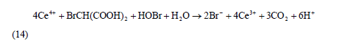 反應(12)、(13)、(14)組成了BZ振蕩體系的全過程,相互聯系、制約和切換。
